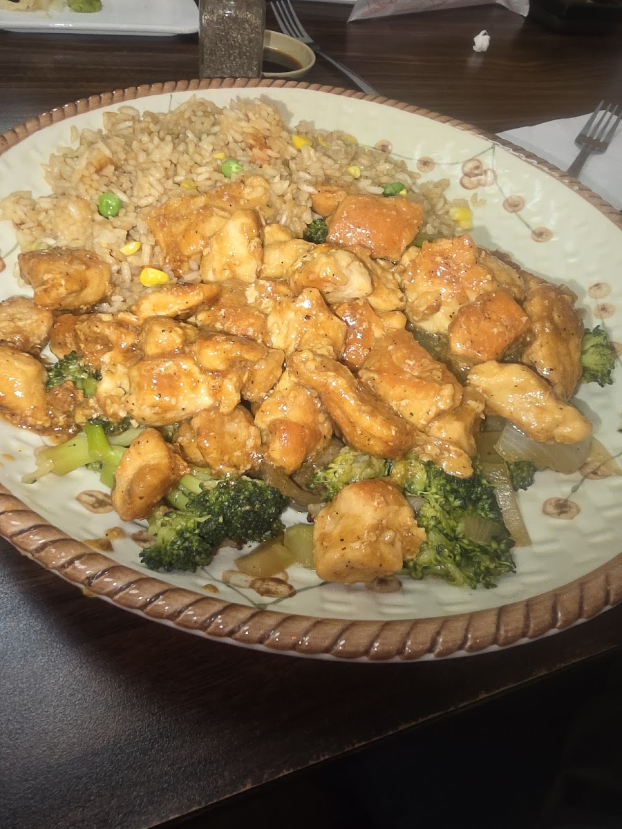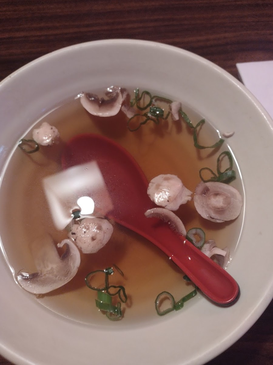 So first I got the soup that I choose with the teriyaki chicken and the soup taste really good and our server is really nice. The chicken was really good tho I will warn you there is a lot of chicken so be prepared to get a to go box. Also the restaurant has some really cool decorations and atmosphere. I will definitely be coming back here.